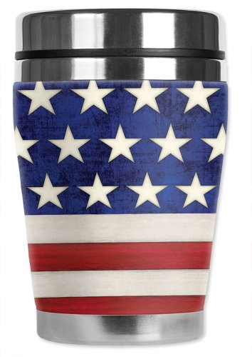 Mugzie Stars & Stripes "Mini" Travel Mug with Insulated Wetsuit Cover, 12 oz, Black