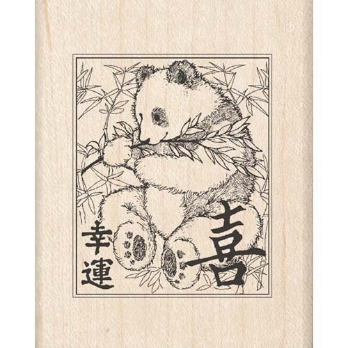 -. Title : PANDA Wood Mounted Rubber Stamp InkaDinkaDo