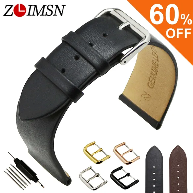 ZLIMSN 블랙 정품 가죽 시계 줄 부드러운 부드러운 얇은 시계 밴드 스트랩 핀 버클 18 20 22 미리메터 벨트 액세서리 시계