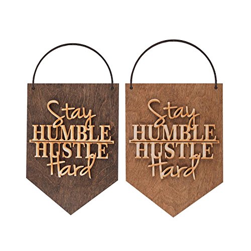 STAY HUMBLE HUSTLE HARD Decorative Hanging Wooden Sign Wall Decor--Perfect Inspirational Quotes!!! (Small, Light Stain)