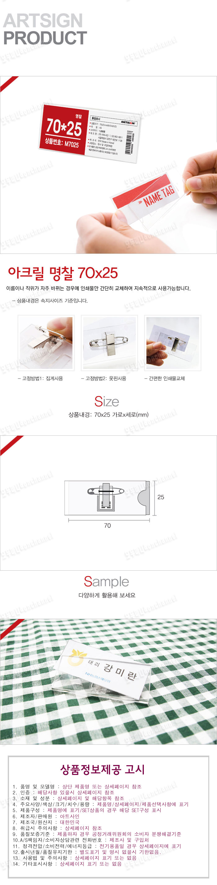 - 품명 및 모델명아크릴명찰(70x25mm)