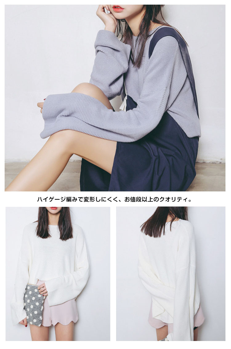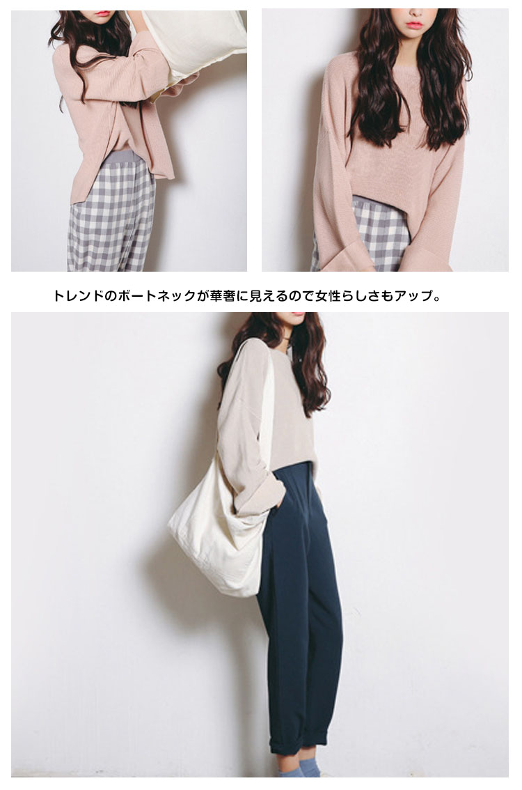 | シンプルでもデザイン性にこだわったゆるシルエットのニットプルオーバー。トレンドのボートネックが華奢に見えるので女性らしさもアップ。秋初めからすぐに使いたいアイテムになること間違いなし!ハイゲージ編みで変形しにくく、お値段以上のクオリティ。無駄な装飾のないシンプルなワンカラーデザインなので、どんなコーデにも取り入れやすい◎パンツからスカートまで、お手持ちのボトムスと合わせれば、シンプルなのに女の子らしい、ふんわりコーデが完成します♪ | |