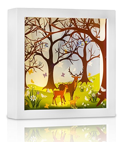 Feel like you're in a Magic Fairytale with these enchanting story in a frame night lights. Like stepping into a dream, this decorative night lamp will fill any room with delight and capture your memories with its colors of innocence and wonder. 3D painted fine art in a wooden frame with a led light in between. The story in a frame soft, warm light will fill your heart with a pleasant glow. Can be tabletop or wall hanging. Since it's all handmade, actual product may vary from its reference photo. Size: 20 cm X 20 cm X 5 cm *Batteries are not included. *This item is not a toy, keep away from children.Feature