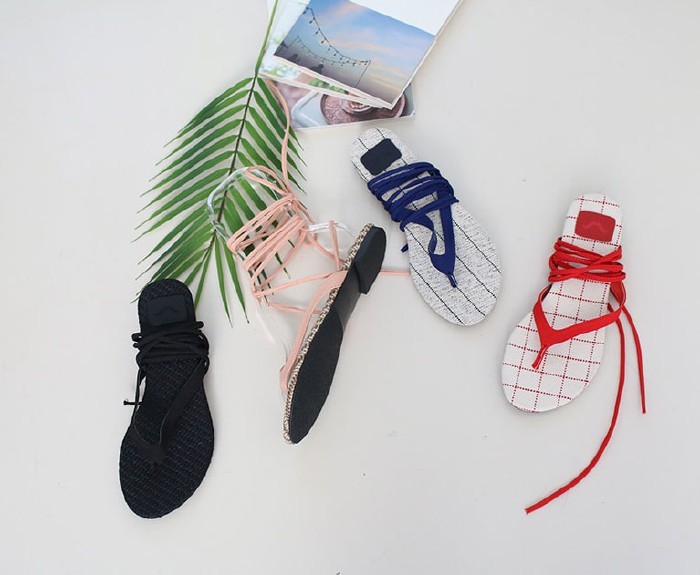 商品名:サンダル レディース ペタンコ トングサンダル アンクルストラップ 2018 春 ファッション 靴 婦人靴