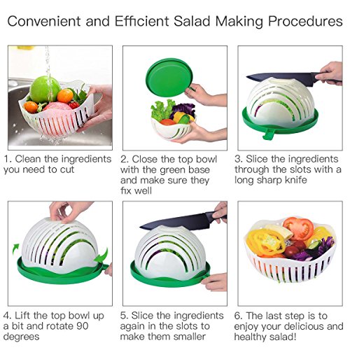 Salads are a great quick, healthy, and tasty meal but now it's even quicker to make with this new product which promises to cut your salad making time down to ONLY 60 seconds. Straining, slicing and serving is a breeze with Anglink 60 Seconds Salad Slicer Maker Bowl! *YOU MUST KNOW* ? Make sure the fruits and vegetables are no more than 3/4 of the cutter bowl. ? Please use knives that are 18cm's long. ? Please only turn the bowl, do not with the food. How to make a healthy and nutrition salad: ▶ Step 1: Insure that the ingredients are clean, place them into the bowl, and make sure the ingredients are no more than 3/4 of the bowl. ▶ Step 2: Close the bowl and make sure the upper cover is attached securely to the base. Cut the ingredients with the pedestal into small pieces and slices. ▶ Step 3: Rotate 90 degree of the upper cover and fix it to the base, again, then cut the ingredients to make them even smaller. ▶Step 4: Now, enjoy your delicious and nutrition salad! Just give your salad cutter slicer bowl a quick rinse or pop it in the dishwasher. No more mess, no more stress. Now you can enjoy a healthy, delicious, and fresh salad in seconds with salad chopper bowl! Package Included: 1x Anglink Salad Cutter Bowl 1x Salad Pedestal 1x User Manual 0 |