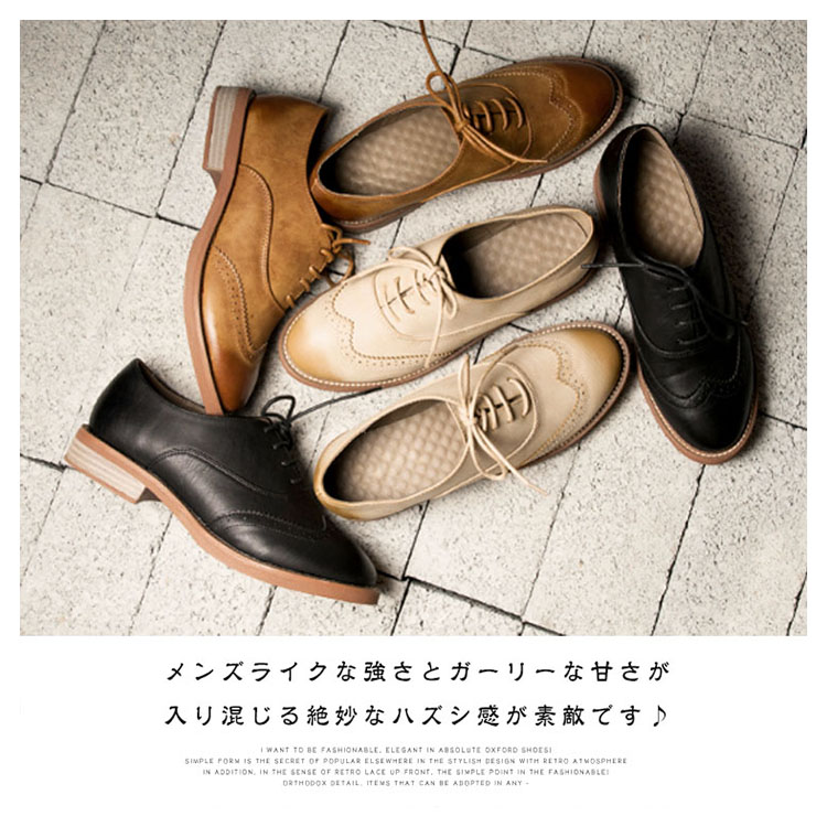 | お洒落さんなら絶対取り入れたい上品なオックスフォードシューズ!シンプルなフォルムでありつつ、どこかお洒落でレトロな雰囲気漂うデザインが人気の秘密♪さらに、レトロ感漂うフロントのレースアップが、シンプルな中にもお洒落なポイント!!オーソドックスなディティールだからこそ、どんなコーデにも取り入れやすいアイテムですね☆ | |
