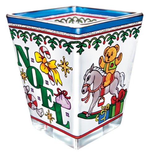 Amia Petite Votive, Hand-Painted Glass with Colorful Christmas Design, 3 Inches Tall