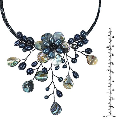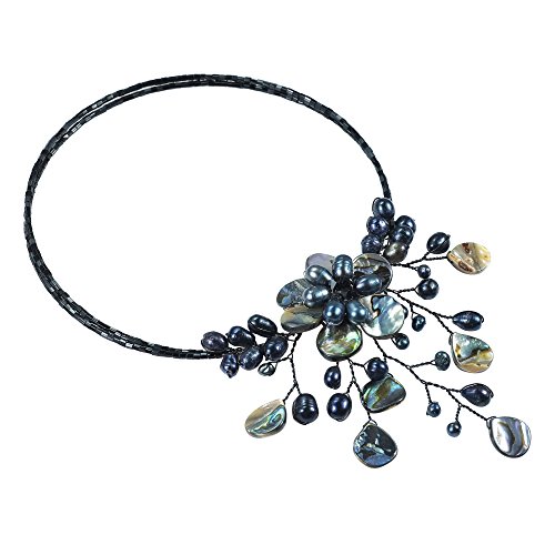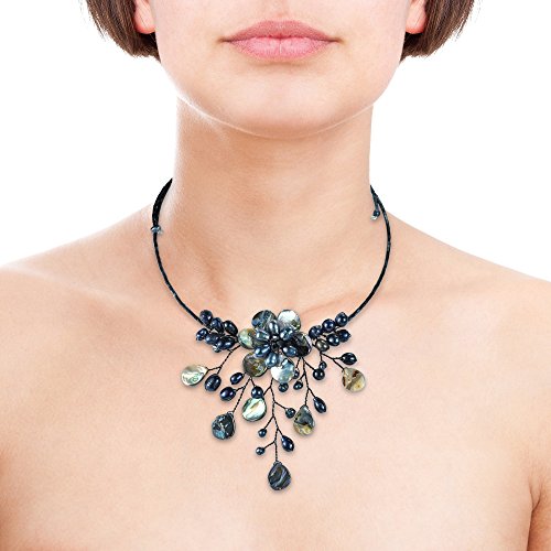 Naturally alluring abalone shell, fashion crystals, glass, and cultured freshwater black pearls (dyed) make up this elegant handmade necklace. Handcrafted by artisans from Thailand this piece is a great accent for any outfit. PLEASE NOTE: The handcrafted nature of this product will produce minor differences in design, sizing and weight. Variations will occur from piece to piece, measurements may vary slightly.Includes an original AERAVIDA organza jewelry pouch (comes in various colors), also handmade by our Artisans. Perfect for gift giving to someone special or keep for yourself!