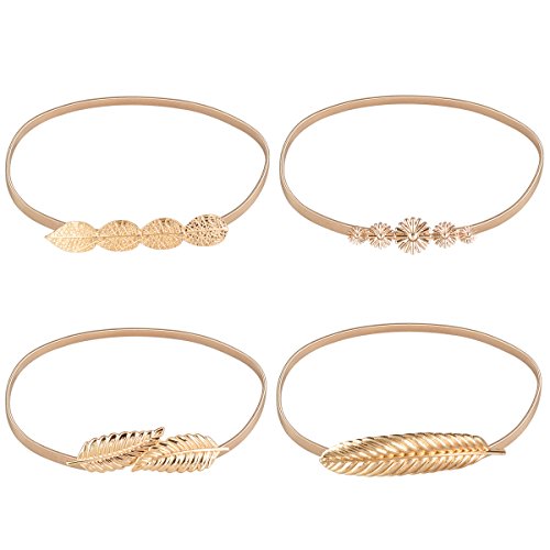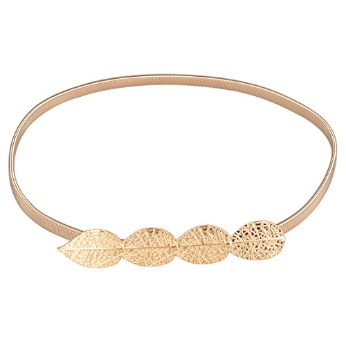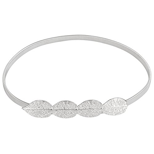 -. Binding : Apparel -. Brand : EasyJoy -. Department : womens -. Feature : Belt total length: 28.35"~43"(Stretchy, Adjustable) / Material:Metal; Fastening way: Interlocking buckle; Colors: Silver/Gloden / Will be a pretty decor for your clothing and dress, makes you slim. / Perfect Gift for youself or your friends. / Packages: 2 pcs/ 4 pcs; 5 styles; choose one you like -. ProductGroup : Apparel -. ProductTypeName : ACCESSORY -. Size : 28.35"~43" -. Title : EasyJoy Women's Metal Leaf Stretchy Elastic Belts, Waist Belt for Dress