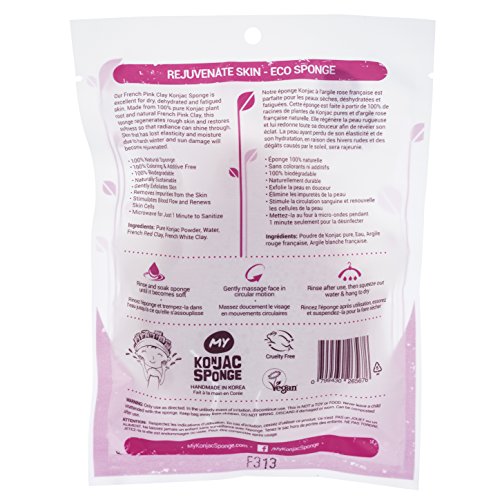 -. Title : MY Konjac Sponge All Natural French Pink Clay Facial Sponge for Dehydrated or Fatigued Skin
