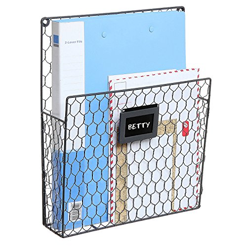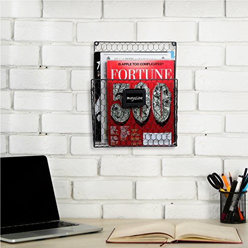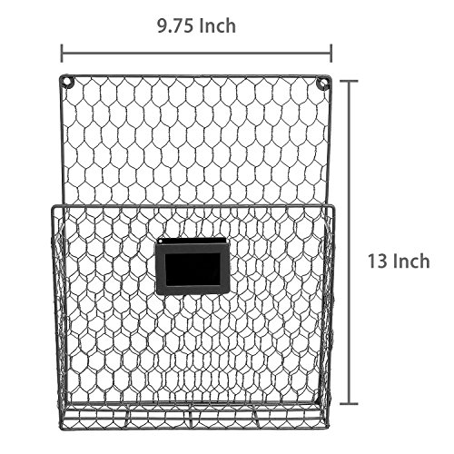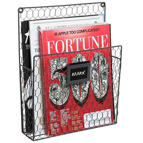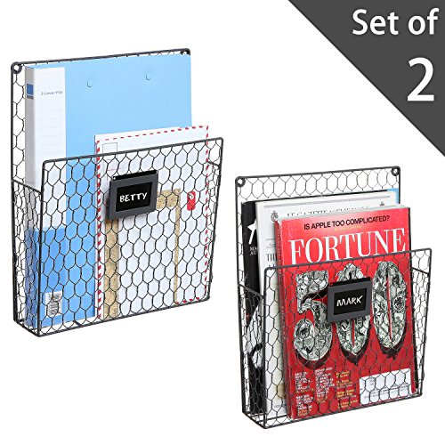 Set of 2 Wall Mounted Chicken Wire Magazine Organizer Rack with Chalkboard Label, Gray
