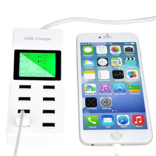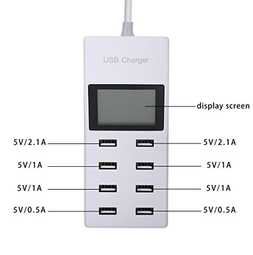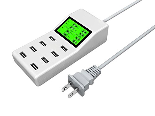 Usb charger,SOHOU 45W Portable 8-Port USB Wall Travel Fast Charger Socket With LCD Display and Auto Detect Technology For smart Phones, And Other USB-Powered Devices (white S)