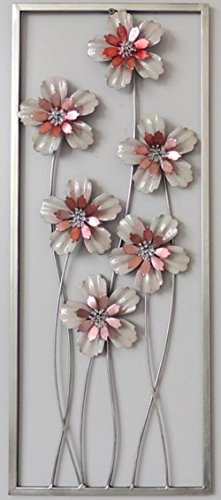 New All American Collection Aluminum/ Metal Wall Decor with Frame 10"x24" (Peach/Red Flower)