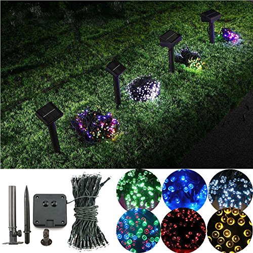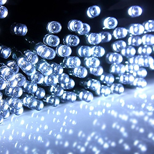 LEDHOLYT Ourdoor 33ft 100 LEDs Solar Powered String Lights 8 Modes Waterproof (White)