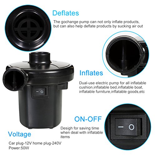 - APPLICATION WIDELY - Can inflate and deflate almost everything: Ideal for all Inflatable cushion, inflatable bed, balloon, Inflatable boat, inflatable furniture, Inflatable goods, electric fan blowing inflatable tube and things like charge and discharge gas use.