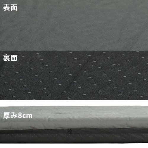 표땅은 튼튼하고 촉감이 좋은 폴리에스텔 소재,안감에는 차내나 텐트 에서의 엇갈림을 방지하는 도트 가공을 했습니다.
