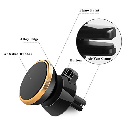 Magnetic Air Vent Mount, WELIKERA Magnetic Car Phone Mount Holder, Cell Phone Air Vent Cradle Holder Highly-Adjustable Phone Holder for Universal Smart Phone, Champagne Gold