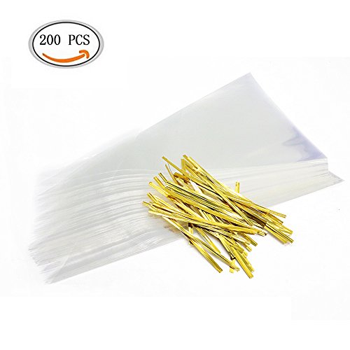 IDS Cone Bag Cellophane Bags Clear Triangle Treat Bags with Twist Ties for Candies Handmade Cookies, 200 PCS