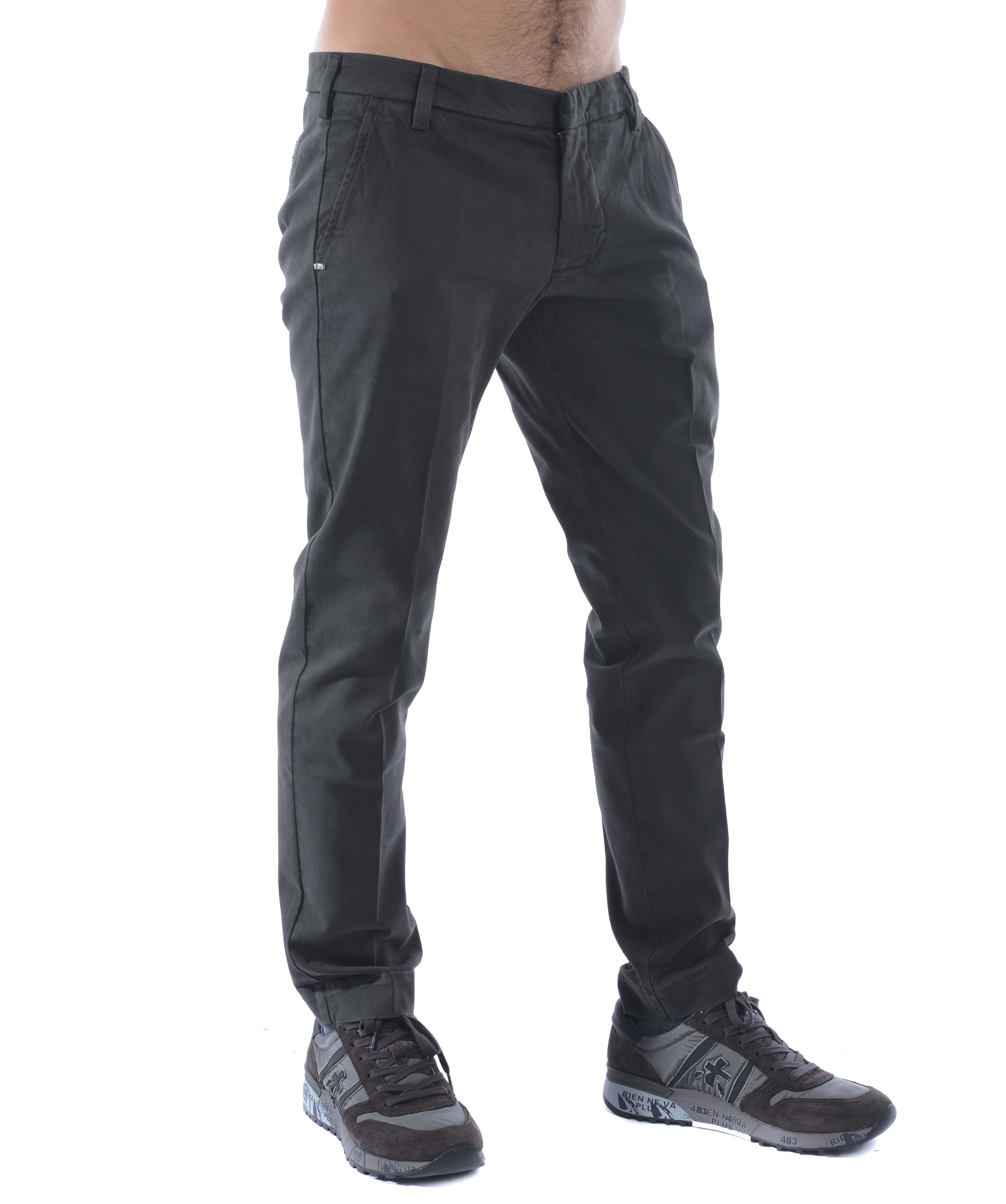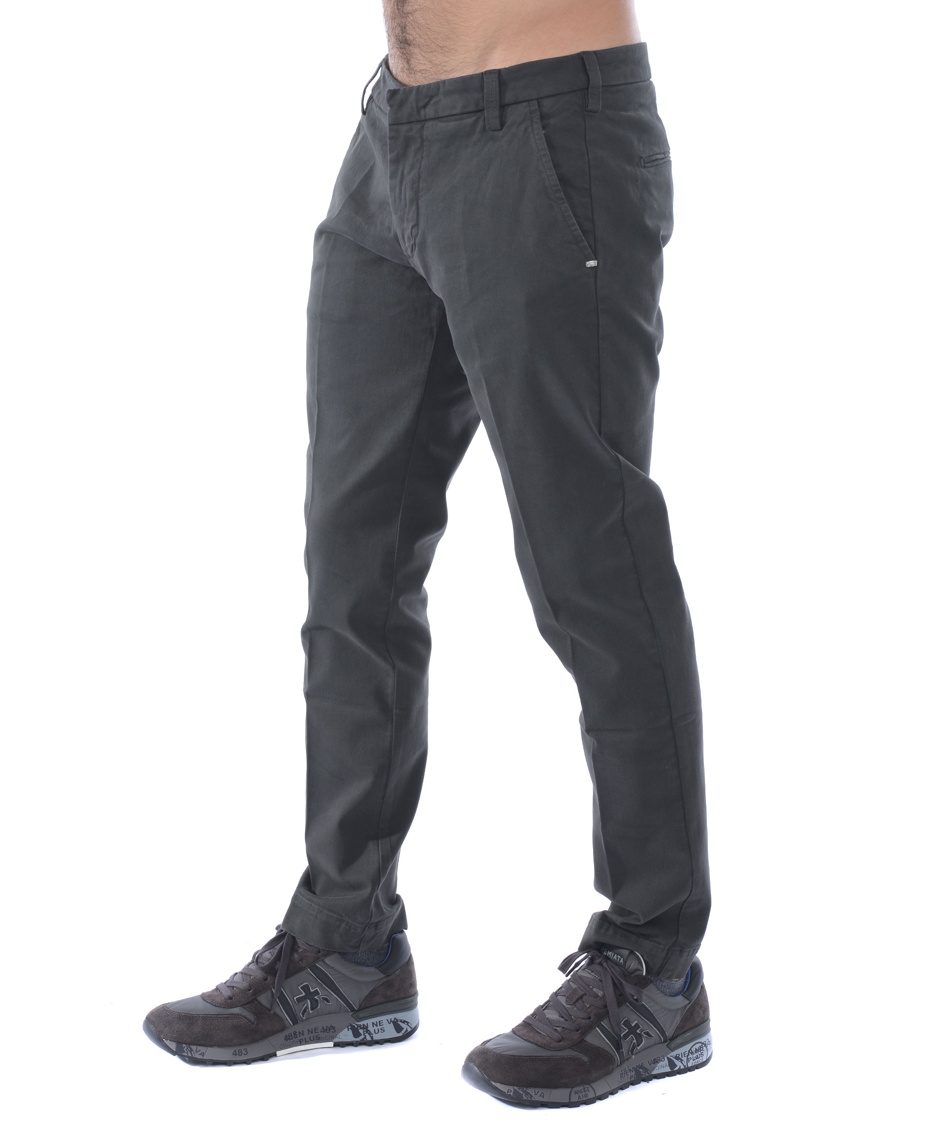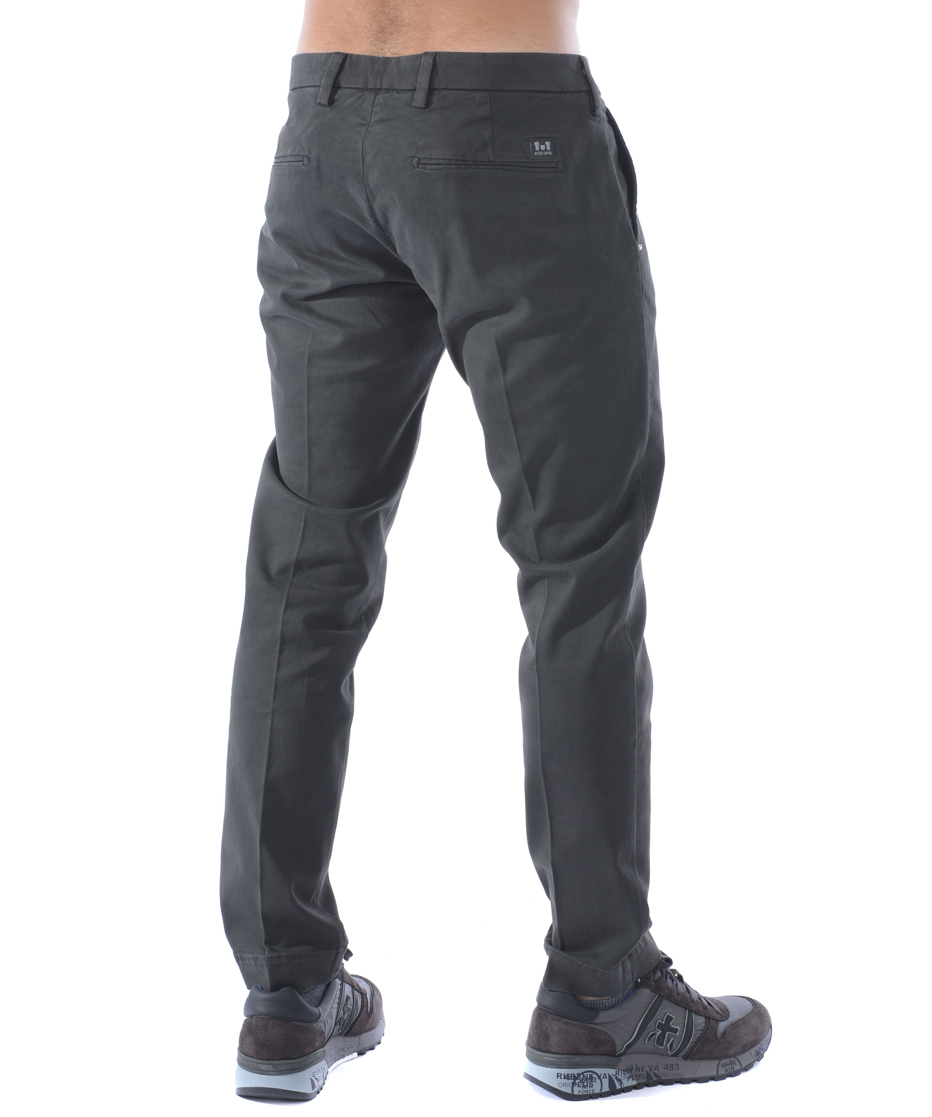 Pantaloni Entre Amis in gabardina stetch di cotone Grigio antracite. Leggero effetto lavato. Tasche frontali diagonali, tasche posteriori a filo. Chiusura con zip e gancio. Patch logo sul retro. Vestibilità slim fit.