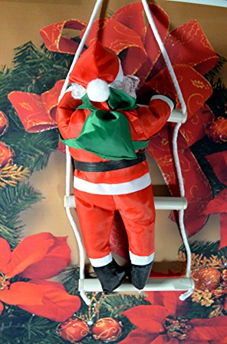 Material: the Santa is made of high quality polyester,the rope is made of nylon and the ladder bar is made of plastic