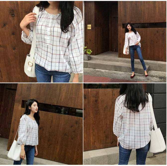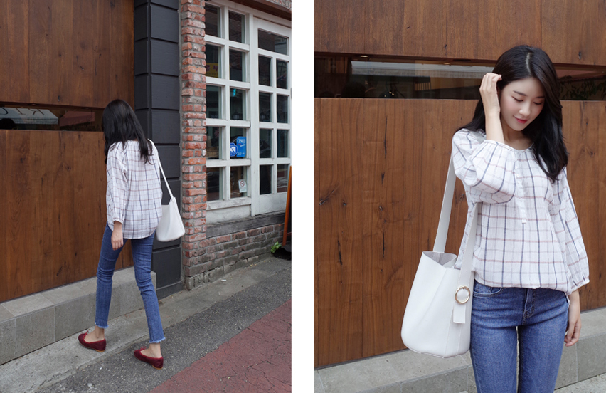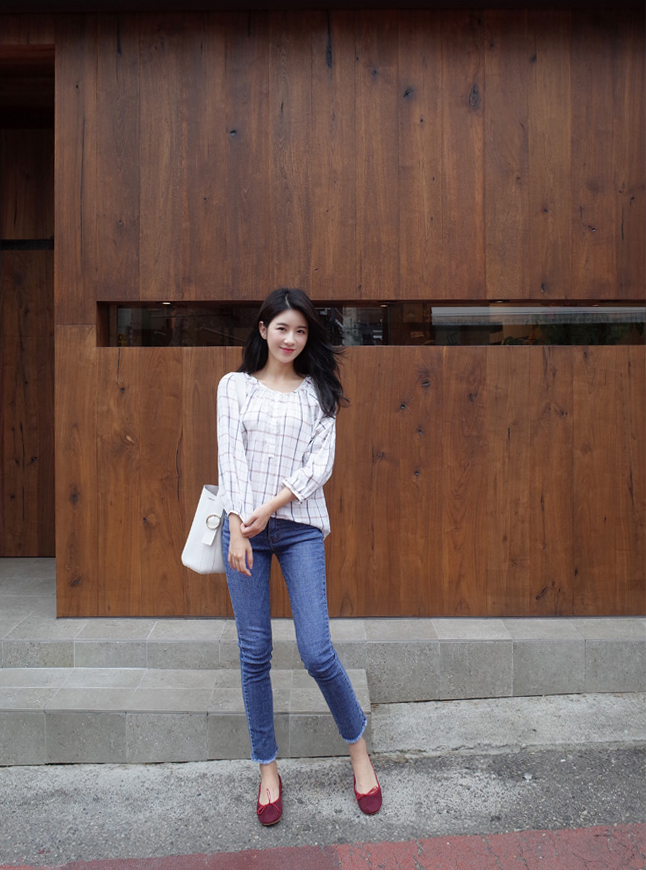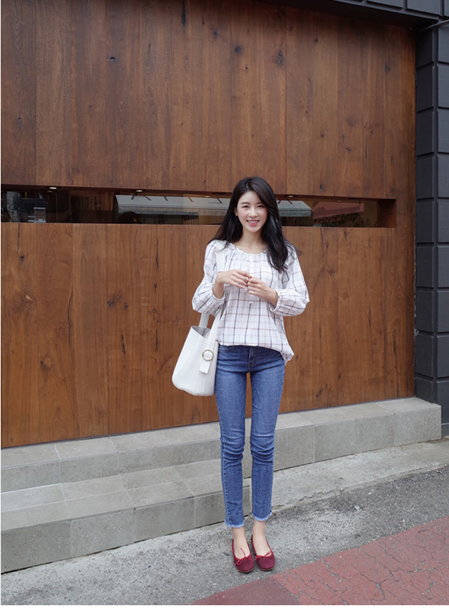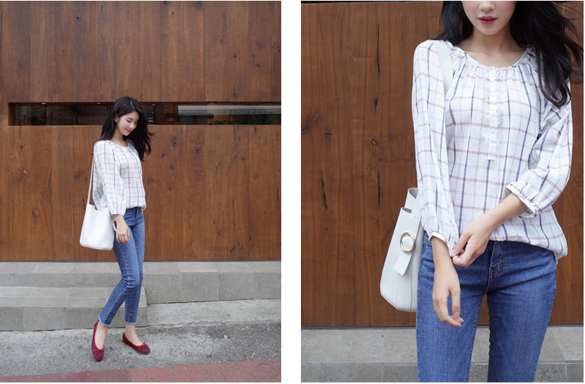 은은한 컬러매치가 매력적인 체크블라우스예요:)