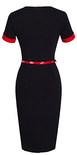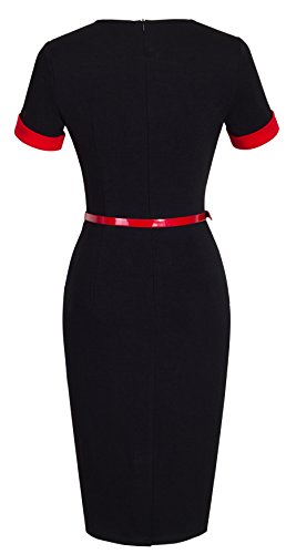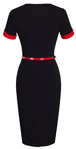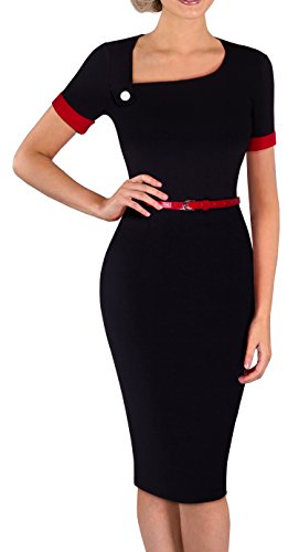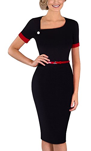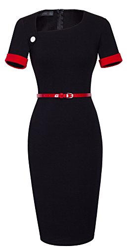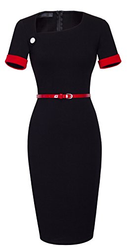 *Dress Description: This stylish, short sleeve, asymmetrical neck,chic, black dress with belt that could be dressed up or down depending on the occasion: for example, worn for daytime business,church or for evening cocktail,party and prom.This is also a vintage stretchy elegant style that's vibrant and comfy.