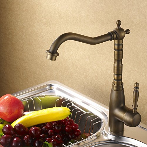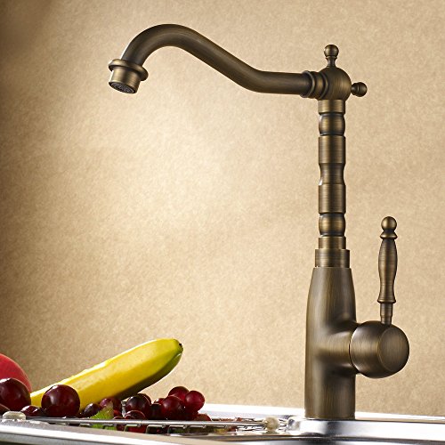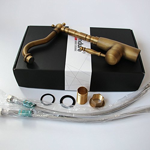 Hiendure Classic Antique Brass Finish Kitchen Faucet Centerset Sink Tap Copper