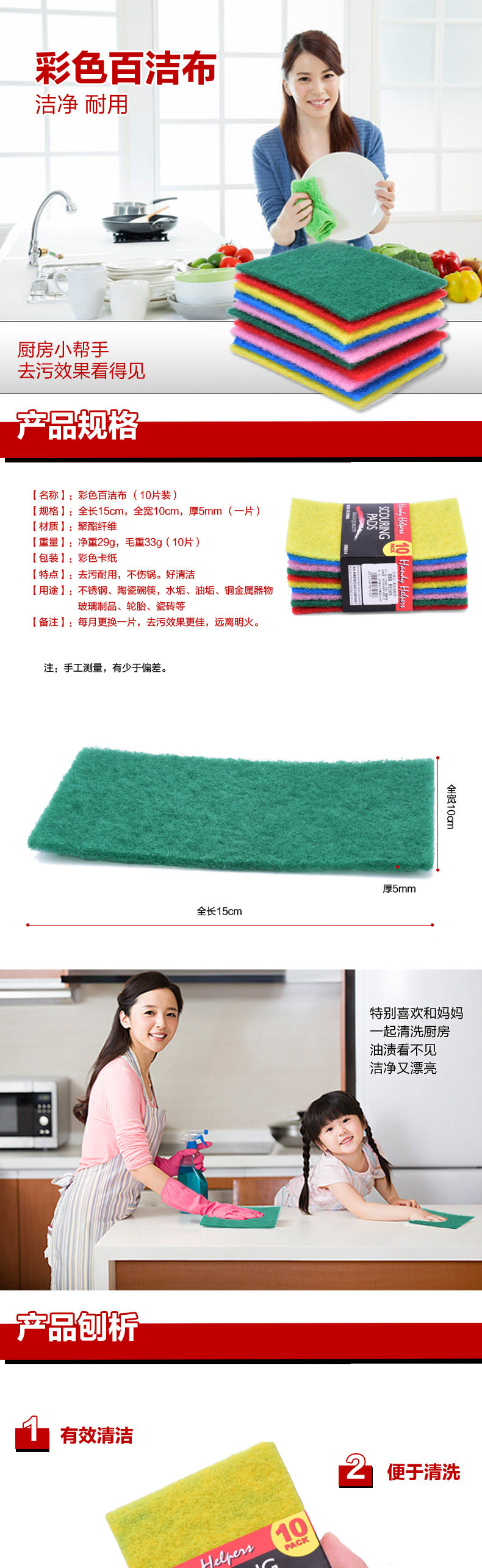 ?彩色百洁布10片装厨房纤维洗碗布多功能实用清洁布不粘油