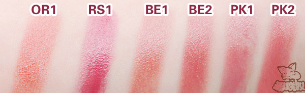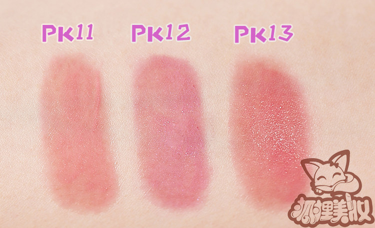 PK11/裸粉色,自然低调,适合淡妆或者裸妆,一抹显现自然好气色,仿佛双唇健康的色泽 PI12/粉色偏点玫红,有点出挑有不会夸张,想要春天桃花妆的妹子可以尝试。让人很清新的赶脚。 PK13/粉色偏点红,没有正红的耀眼,又没有粉色的低调,刚刚好的颜色,最适合美美出行。