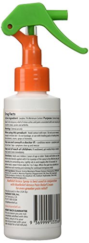 -. Feature : Temporarily relieves back, neck and muscle pain / Reduces arthritis pain and joint inflammation while increasing capillary circulation / 3X the arnica of other leading products / 100% Natural, No menthol, uses Camphor as active ingredient / The only pain relief spray to include the benefits of Arnica, Eucalyptus and oil