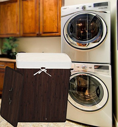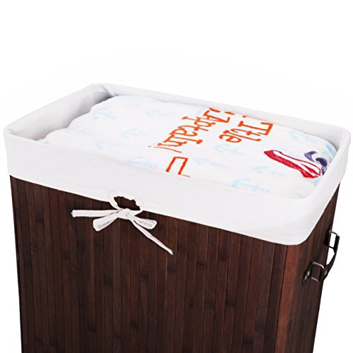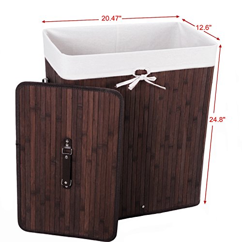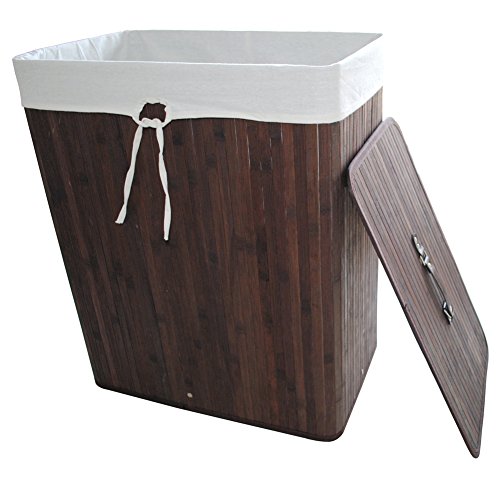 Bamboo Laundry Hamper Folding Cloth Storage Basket Compartment Hamper/Collapsible Hamper with Lid and Removable Lining Rectangle Dark Brown