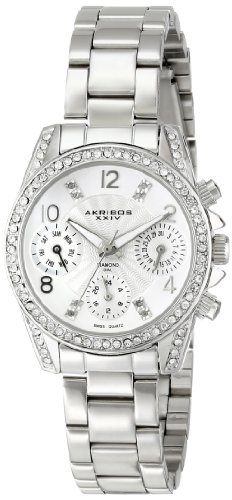 -. Title : Akribos XXIV Women's AK710SS Lady Diamond Swiss Quartz Multifunction Diamond & Crystal Silver-tone Bracelet Watch