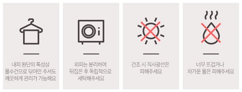 방수성과 투습성의 상반된 특성을 동시에 지닌 고기능의 내피 사용으로 내장재 보호 및 제품의 사용기간을 연장해 줍니다