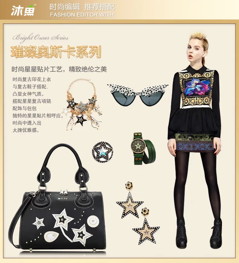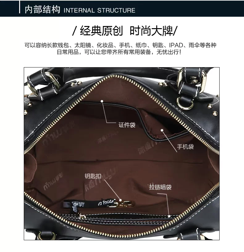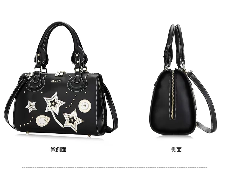 Style: Handbag Texture: PU Material Technology: Printing Carry parts Type: The soft Closed way: zipper Internal Structure: zipper pocket cell phone pocket document bag Color: black Oscar Whether the sandwich: None Bags Hardness: Soft Whether folding: No Applicable scene: Leisure Bag size: medium (the longest side 30-50cm) Shape: pillow-shaped Lining Material: Polyester