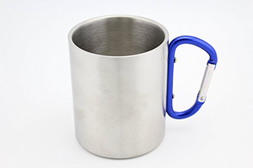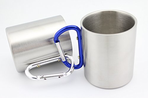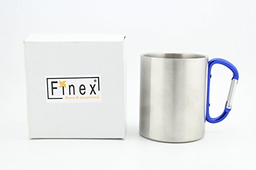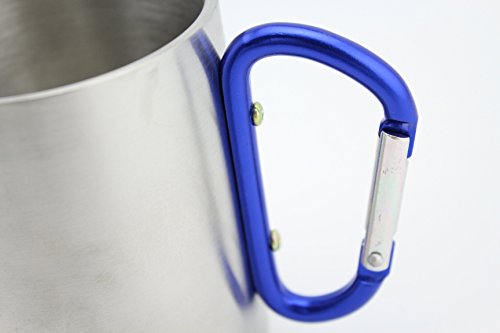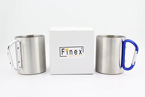 Finex - Set of 2 - Stainless Steel Portable Travel Water Tea Coffee Mug with D-Ring Carabiner Hook as Handle for Outdoor Sports Camping Hiking Climbing Home Office Adults & Kids - Large 10oz