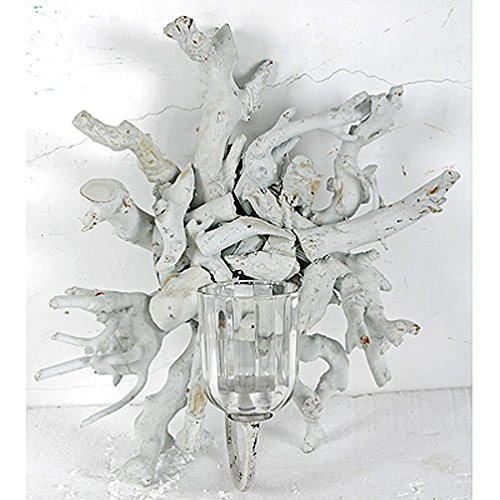 Studio : AB Home Group Publisher : AB Home Group Binding : Kitchen Product Description A dramatic, stunning way to light up a space. The painted driftwood brings natural rustic ambience to your decor with the natural character and beauty.This striking and unique Wall Sconce Candle Holder adds an elegant and stylish lighting option to your room. Made of driftwood, iron, glass. Measures 14.5"x17"x7". 0