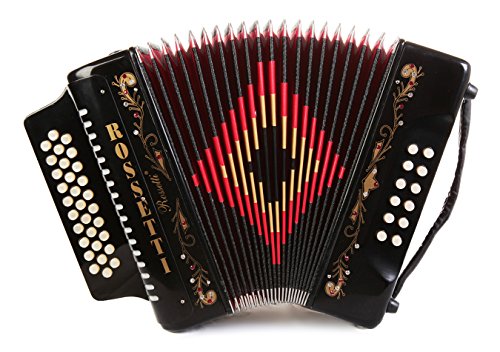 Product Description Brand new Rossetti full-size accordion with straps and case, nice-looking and ready to play. This inexpensive accordion is well-made, reliable, handsome and sounds great. It is an excellent accordion for the student, the musician who wishes to double on accordion, or for the professional who wants an instrument for travel or practice. 0