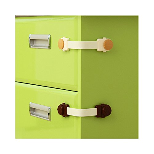 Child Safety Lock, Mufti-Purpose Safety Adjustable Strap & Latch System From Cabinets & Drawers For Baby Protection (Brown)6PCS