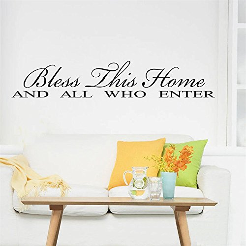 ufengke "BLESS THIS HOME AND ALL WHO ENTER" Quotes and Sayings Wall Decals, Living Room Bedroom Removable Wall Stickers Murals