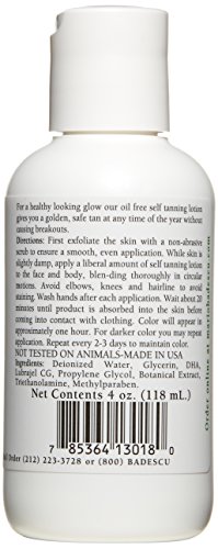 Get a natural, sunless tan with our lightweight, oil-free self tanning lotion. Hydrate your skin and achieve a healthy, subtle glow within 2 hours of application. Safe and gentle for use on face. Best results when used after our face and body exfoliants.Feature