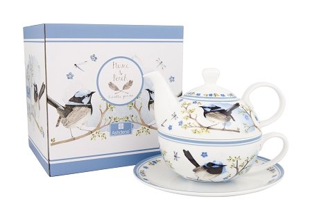 -. Brand : Ashdene -. Color : Blue -. EAN : 9312514163401 -. Feature : Adorable 3 piece fine bone china mug set in decorative box for gift giving / Mug holds approximately 11 fluid ounces and comes with lid; microwave and dishwasher safe / Metal infuser basket for your favorite loose leaf tea / Also great for your favorite coffee and other hot beverages / This beautiful set combines a delicate blend of watercolor feathers, leaves, twigs and flowers for the perfect morning tea -. Label : Ashdene -. Manufacturer : Ashdene -. Model : 16340 -. MPN : 16340 -. PartNumber : 16340 -. ProductGroup : Kitchen -. ProductTypeName : KITCHEN -. Publisher : Ashdene -. Size : 11 oz -. Studio : Ashdene -. Title : Ashdene Plume & Perch Blue Wren 3 Piece Tea Mug Set with Infuser and Lid Fine China