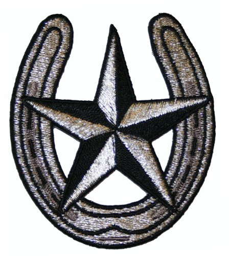 -. Binding : Home -. Brand : FD -. Feature : Embroidered Iron On Patch / Size is about 2 5/8" wide x 3" tall. -. Label : FD -. Manufacturer : FD -. ProductGroup : Home -. ProductTypeName : ART_AND_CRAFT_SUPPLY -. Publisher : FD -. Studio : FD -. Title : FD Horseshoe & Nautical Star Tattoo Silver & Black Embroidered Iron On Patch