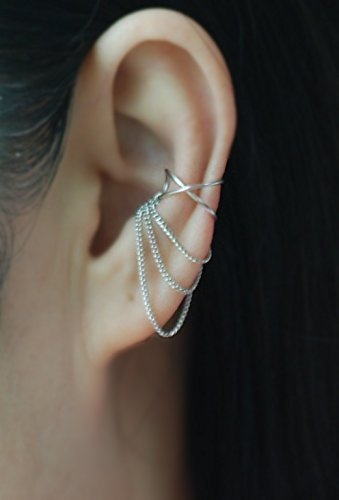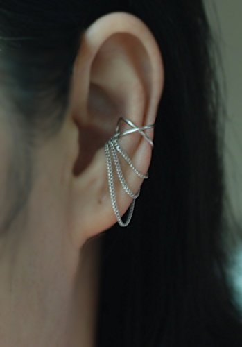 -. Title : 20gauge 3 Chains Cross X ear cuff ,No Piercing Cartilage Ear Cuff, Ear Jacket, Ear Wrap / Please select an option.