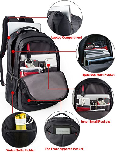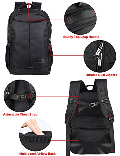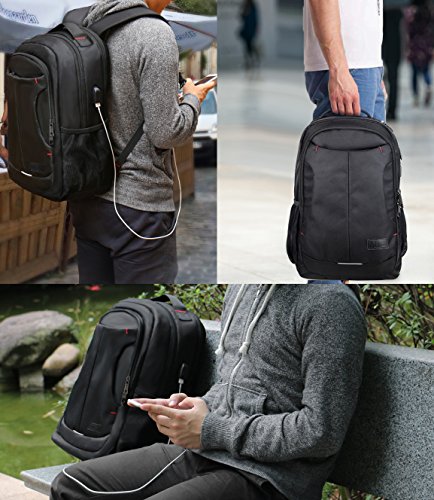 -. Feature : External dimensions: 13" x 6.9" x 19" ((LxWxH)), SEPARATED thick padded laptop compartment holds 15.6 inch laptop UP TO 17inch Slim laptop ; ideal for work, travel, school / External USB Charger Port with built-in charging cable, Putting your Power Bank into backpack and connect internal USB cable, then let your charging cable insert external USB port to connect your electronic device / DURABLE metal accents and zipper pulls, protects inside items from thief and offers a P.R.Ivate space / 4 Main pockets & 9 inner pockets & 2 elasticized mesh side water bottle holder & removable key ring provide organizational compartments for your notebook, iPhone, iPad, kindle, pen, keys, wallet, books, clothes, foldable umbrella and more / Constructed of water repellent and anti-scratch durable 1680D polyester with high density nylon lining; "S" Curve padded shoulder straps & back multi-panel airflow Ergonomic design offer maximum back support and comfort; Sturdy top loop handle for a secure hold when picking up or moving the backpack