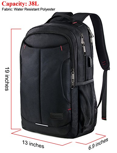 -. Title : Mancro Laptop Travel Backpack, Water Resistant College Bag with USB Charging Port, Business Slim Backpacks for Women & Men, fit 15.6 inch Computers / Tablets, Black
