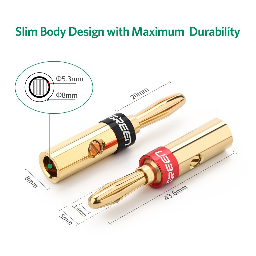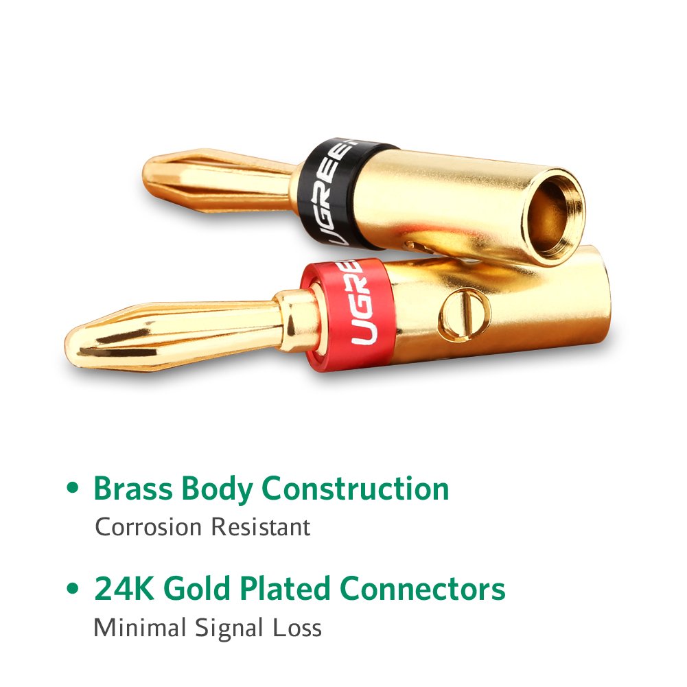 UGREEN If you connect to your speakers with a banana plug which has the effect of extremely rising sound quality, you will not be bothered by the speaker cable anymore.