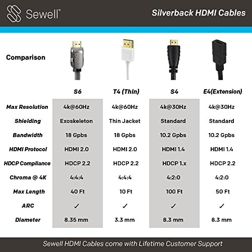 Silverback S6 4k HDMI Cable 30 ft - HDMI 2.0, HDCP 2.2 and 3D support, 4k @ 60hz 4:4:4, Deep Color, by Sewell