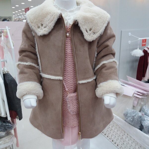 넓은 카라 디자인이 얼굴을 작아 보이게 연출해주는 무스탕입니다.허리에서 A라인으로 떨어지는 라인으로 두께감 있는 무스탕 소재지만 투박하지 않고 여성 스러럽게 연출할수있는 스타일입니다~~