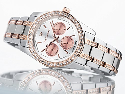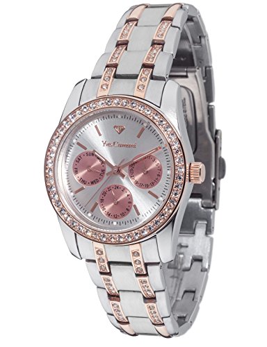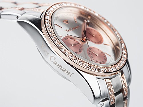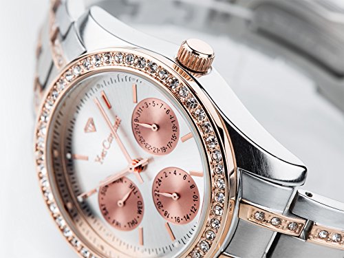 This athletic and elegant Mielle ladies' watch captivates with its classic design: extremely practical with its separate date and weekday display, distinctive dial, casing and polished bracelet. Cubic zirconia stones are generously integrated into the bezel and bracelet to really catch the eye and add a touch of glamour to the classically-athletic design. Ticking away at the core of the watch is an original Miyota quartz movement, ensuring you can reliably and accurately keep track of the time. The movement is protected by a high-quality casing and scratch-resistant mineral crystal glass. This watch is a real favourite: it is the perfect item to wear everyday, yet just as impressive when making a grand appearance.Feature