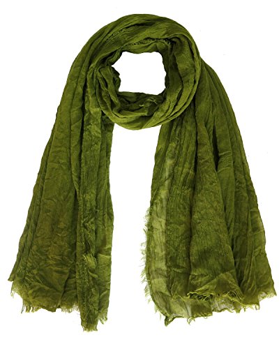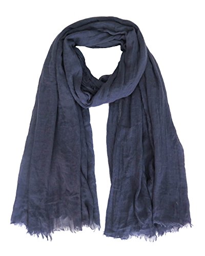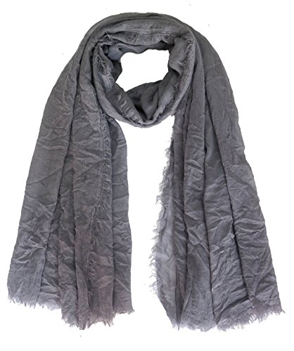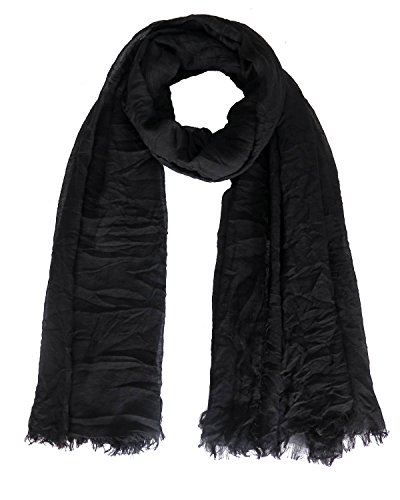 Lina Lily Super Large Crinkled Stretchy Plain Color Women's Scarf Wrap with Frayed Edges